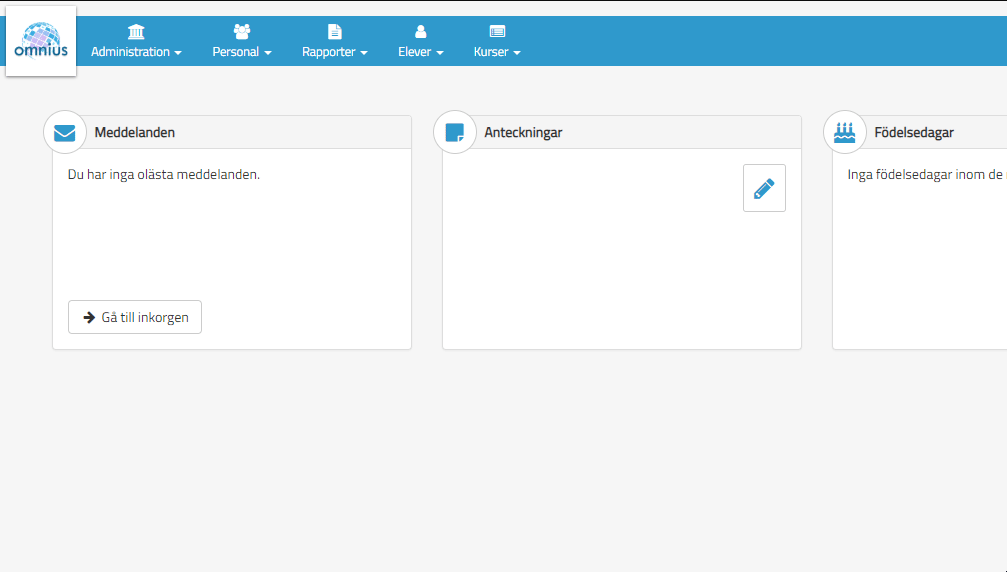 Under ikonen "Elever" så finns modulen "Registrera kurs" och här registrerar man kurser på elever samt lägger till nya elever.