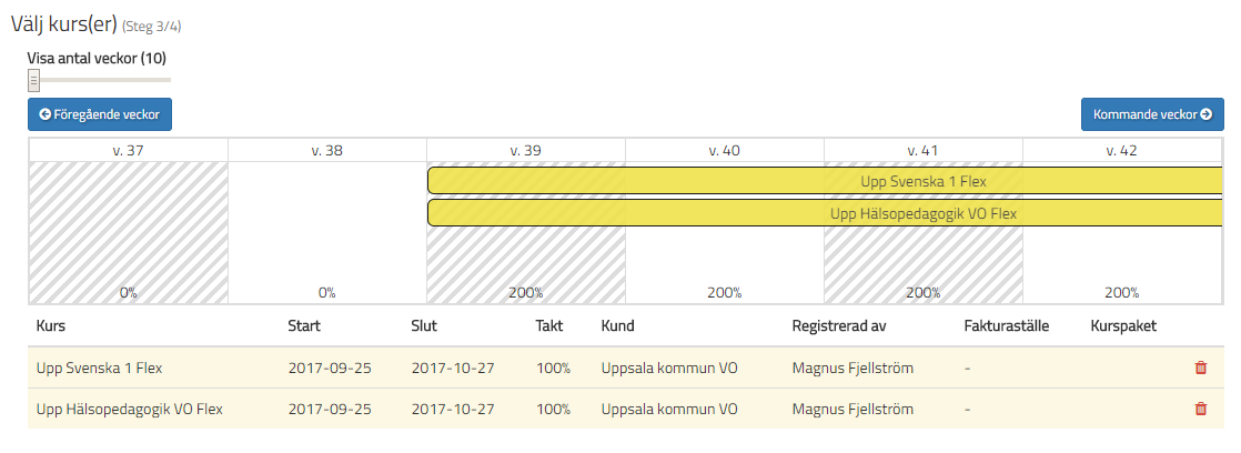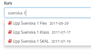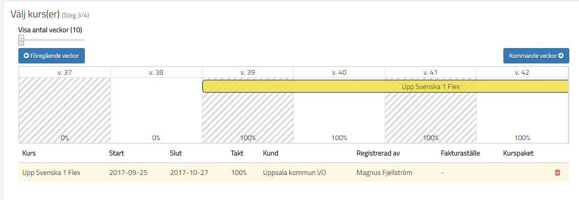 Om man ångrar sig här och vill ta bort en kurs så är det bara att klicka på den röda soptunnan.