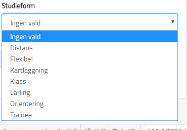 Slutdatum styrs utav vilken Kurstakt som är vald. Systemet räknar automatiskt ut rätt Slutdatum förutom om Kurstakten är satt på "Individuell studietakt", då går det att manuellt sätta ett Slutdatum.