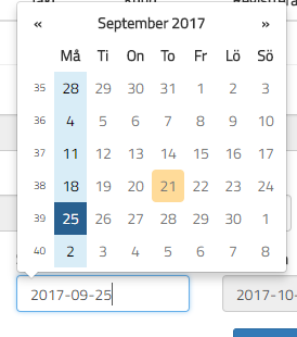 Klicka i rutan för Startdatum för att få fram en kalender och välj ett datum: