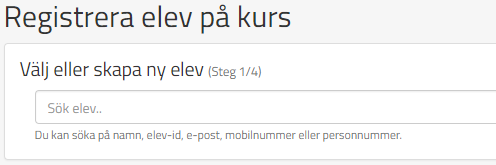 Men om eleven inte finns sedan tidigare så ser det ut så här och man behöver bara flytta ned markören till "Skapa ny elev" för att påbörja skapandet av den nya eleven: