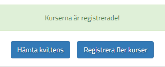 När kurserna är inlagda så får jag en bekräftelse på detta och jag kan även hämta en kvittens på det eller välja att gå vidare och registrera fler kurser: