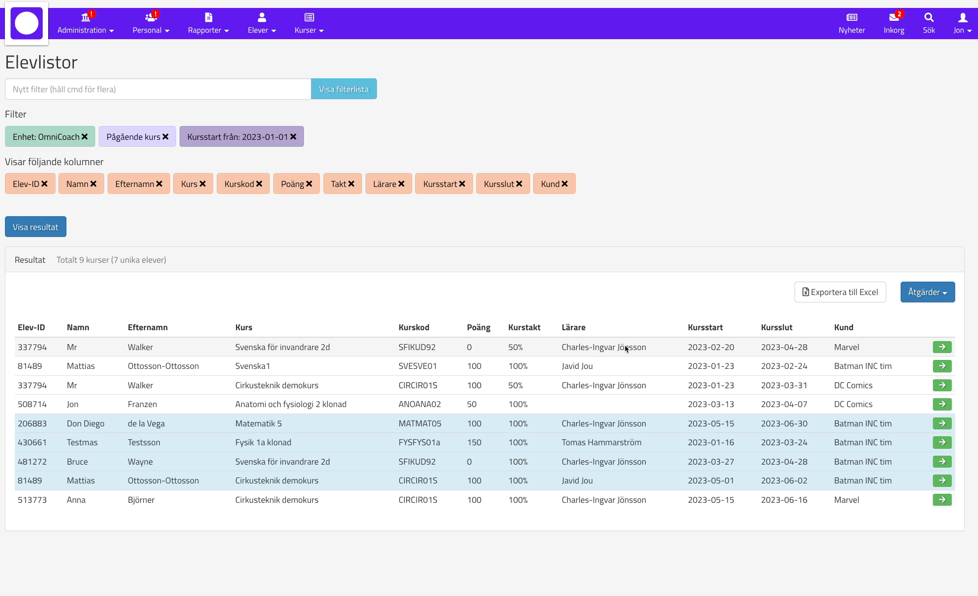 Byta kund (ort) på studerande Uppdaterad 2026-03-23 Via elevlistor går det att byta kund på flera studerande samtidigt: