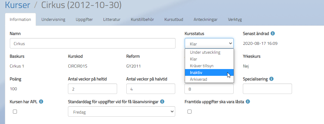 Inaktiv / arkiverad kurs