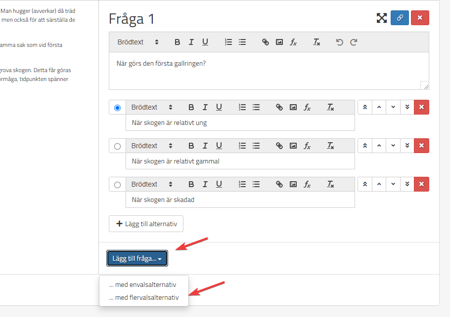 Sedan kan du alltså lägga till frågor som är direkt kopplade till specifika ord eller stycken i texten: