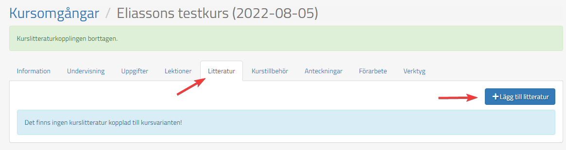 Om du har kurslitteratur som ska användas i kursen kan du lägga in den i systemet: