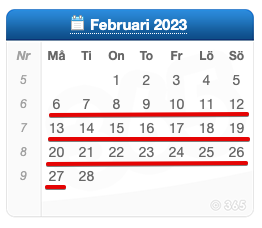 Om den t.ex blir tillgänglig 6:e februari så är den tillgänglig till den 27:e februari kl 23.59. se bild nedan: