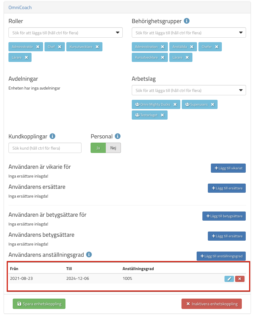 För att det ska fungera så behöver ni först ställa in lärarens anställningsgrad på deras användare: