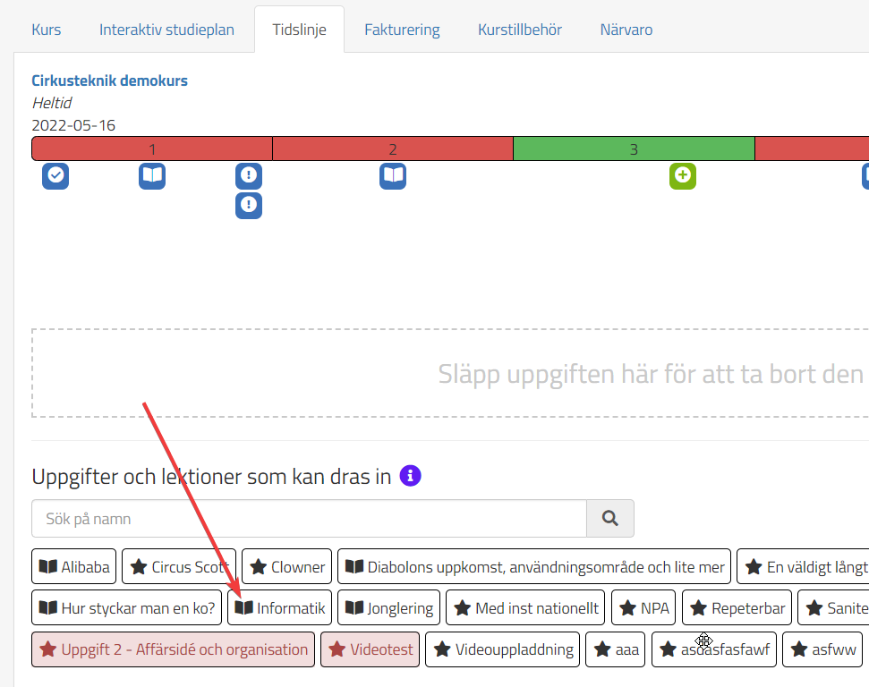 När ni har sparat lektionen kan ni lägga in den i fliken undervisning eller dra in den på den studerandes tidslinje: