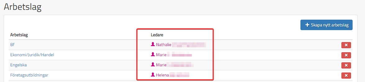 observera att skolledaren behöver stå som ledare för arbetslaget i arbetslagsmodulen samt att arbetslagen behöver tillhöra Ämnesgrupper