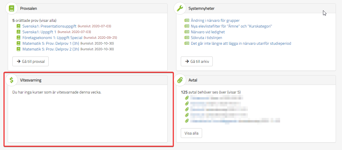 så kommer skolledaren för arbetslaget att få en överblick över elever som tillhör viteskunder i startsidemodulen Vitesvarning förutsatt att man har lagt till den på sin startsida